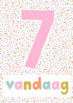 Leuke verjaardagskaart met confetti en de tekst: 7 vandaag