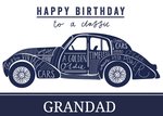 Een echt classic. Op de kaart staat een auto en de tekst: Happy birthday to a classic grandad.