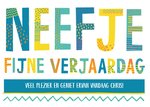 Vrolijke kaart voor een jarig neefje. De naam is aanpasbaar.