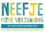 Vrolijke kaart voor een jarig neefje. De naam is aanpasbaar.