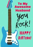 Op deze stoere kaart staat een gitaar en de tekst: To my awesome husband you rock! Happy birthday
