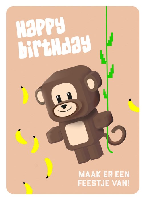 Leuke verjaardagskaart met aapje en tekst.