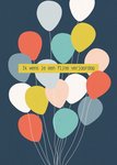 Vrolijke verjaardagskaart met een tros ballonnen en de tekst: Ik wens je een fijne verjaardag.