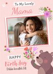 Kleurrijke verjaardagskaart met bloemen, een beertje en aanpasbare foto. De tekst: 'To my lovely ____. Happy Birthday'. Verras je mama met deze leuke verjaardagskaart van Moonpig.