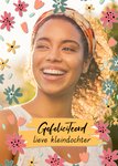 Kleurrijke verjaardagskaart met illustraties van bloemen en de tekst: 'Gefeliciteerd lieve kleindochter'. Verras je kleindochter met deze stijlvolle verjaardagskaart van Greetz.