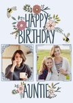 Mooie verjaardagskaart waar je twee eigen foto's in kan toevoegen. Op de kaart staat: Happy birthday auntie.