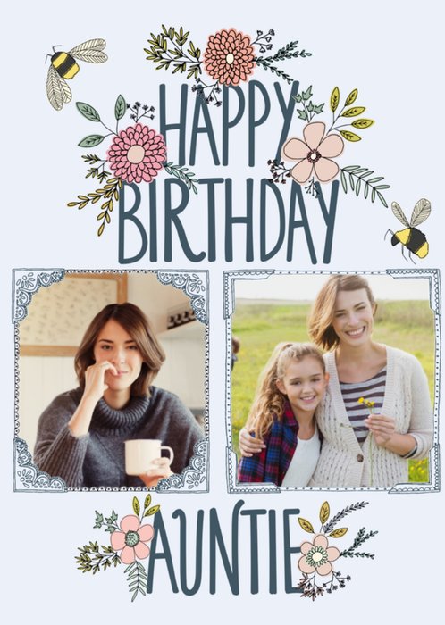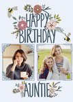 Mooie verjaardagskaart waar je twee eigen foto's in kan toevoegen. Op de kaart staat: Happy birthday auntie.