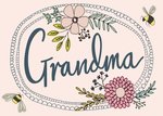 Leuke verjaardagskaart met bloemen en bijen op de kaart. In het groot staat er 'Grandma' op de kaart.