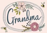 Leuke verjaardagskaart met bloemen en bijen op de kaart. In het groot staat er 'Grandma' op de kaart.