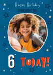 Kleurrijke verjaardagskaart met sterren, aanpasbare foto en de tekst: 'Happy birthday broertje. __ today'. Verras je broer met deze leuke verjaardagskaart van Moonpig.