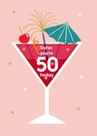 Leuke kaart met een cocktail en de tekst: Sister, you're 50 today.