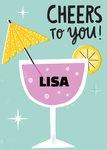 Leuke zomerse verjaardagskaart met cocktail en naam. Op de kaart staat: Cheers to you!