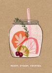 Bruine verjaardagskaart met cocktail en de tekst: Ready, steady, cocktail.