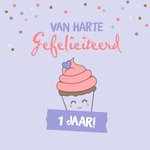 Het is binnenkort feest! Want jij kent iemand die jarig wordt. Stuur een kaartje om een glimlach op iemands gezicht te toveren. Op deze super leuke kaart van Greetz staat en cupcake en de tekst: van harte gefeliciteerd. Je kunt een leeftijd toevoegen.