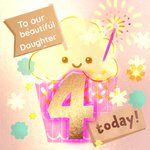 Vrolijke kaart voor een jarige dochter met de tekst: To our beautiful daughter 4 today!
