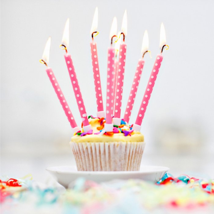 Leuke verjaardagskaart met een cupcake met kaarsjes.