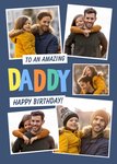 Kleurrijke verjaardagskaart met aanpasbare fotos en de tekst: 'To an amazing Daddy. Happy Birthday!'. Verras je vader met deze leuke verjaardagskaart van Moonpig.