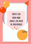 Wens je zus een fijne verjaardag toe met deze verjaardagskaart met de tekst: Dikke kus voor mijn jarige zus door de brievenbus.