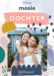 Lieve fotokaart voor een jarige dochter. Op de kaart staat: Voor onze mooie dochter, gefeliciteerd!