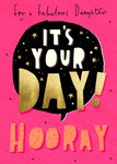 Leuke verjaardagskaart met de tekst: For a fabulous daughter it's your day! Hooray