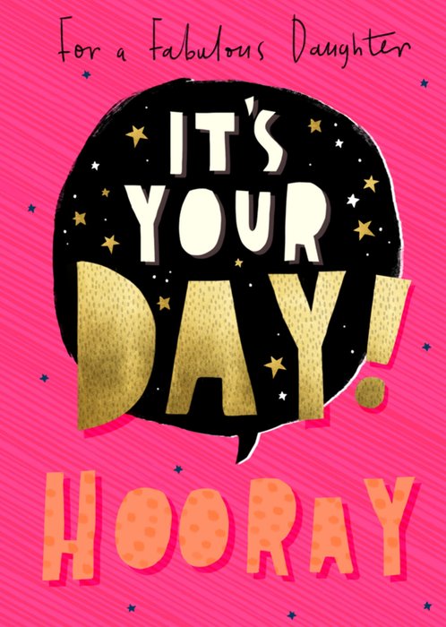 Leuke verjaardagskaart met de tekst: For a fabulous daughter it's your day! Hooray