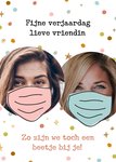 Wens je vriendin een fijne verjaardag toe met deze grappige verjaardagskaart. Voeg twee leuke foto's toe en op de kaart staat de tekst: Fijne verjaardag lieve vriendin. Zo zijn we toch een beetje bij je!