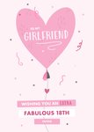 Verjaardagskaart met aanpasbare naam en de tekst: To my girlfriend wishing you an extra fabulous 18th Olivia