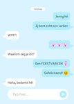 Grappige verjaardagskaart met een chatgesprek.