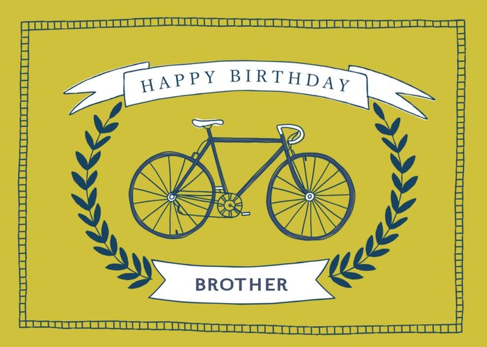 Verjaardagskaart met een fiets en de tekst: Happy birthday brother.