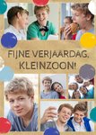 Leuke fotokaart met confetti en de tekst: Fijne verjaardag, kleinzoon!
