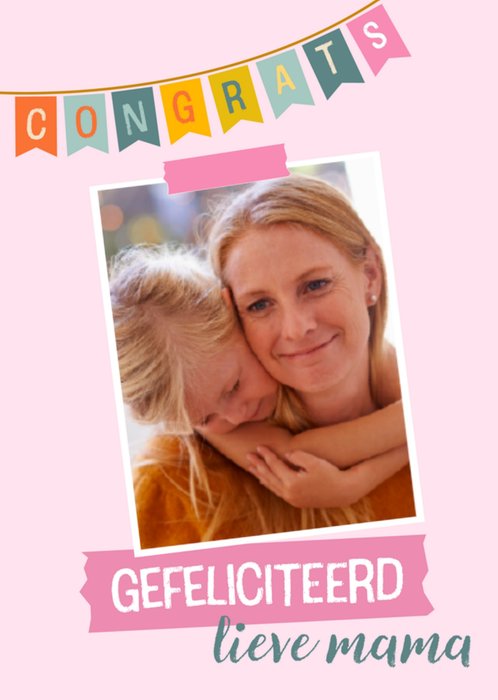 Het is binnenkort feest! Want jij kent iemand die jarig wordt. Stuur een kaartje om een glimlach op iemands gezicht te toveren. Op deze super leuke kaart van Greetz staat: congrats gefeliciteerd lieve mama. Je kunt een foto toevoegen.