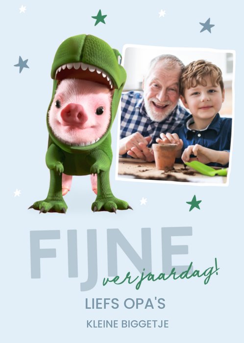 Leuke verjaardagskaart met een biggetje en foto.