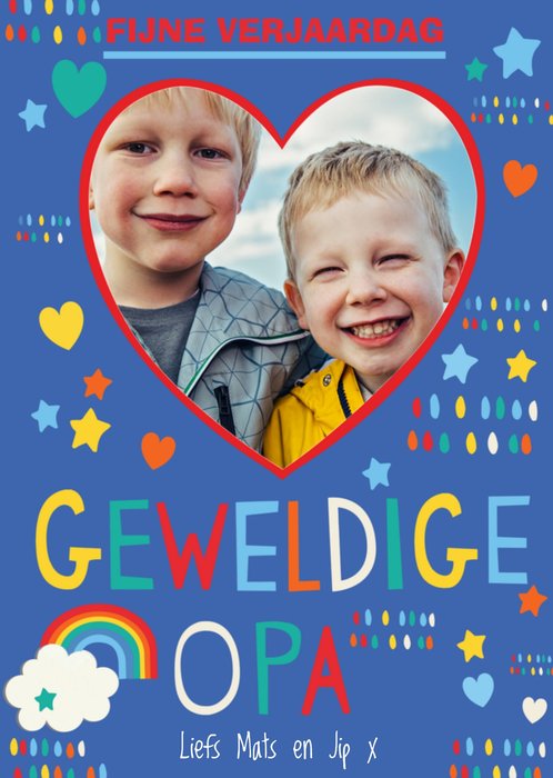 Leuke verjaardagskaart met foto en aanpasbare naam.