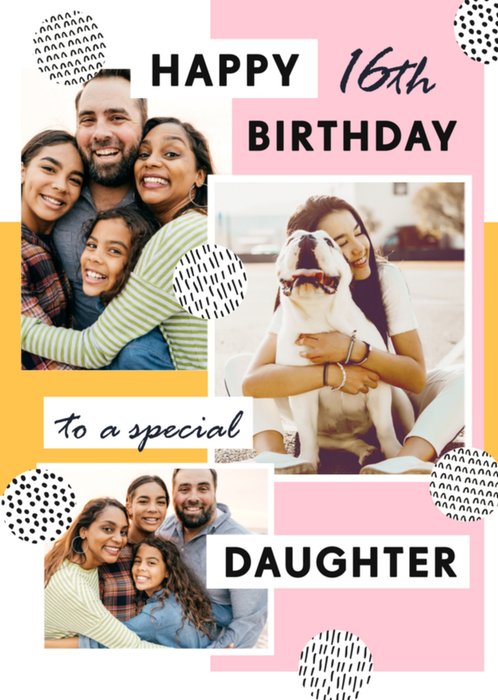 Lieve fotokaart voor een jarige dochter met de tekst: Happy 16th birthday to a special daughter.
