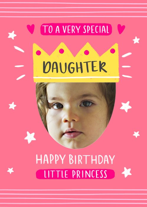 Verjaardagskaart met foto en de tekst: To a very special daughter happy birthday little princess