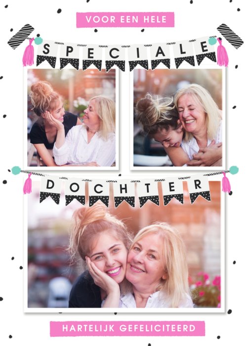 Leuke fotokaart voor een jarige dochter.