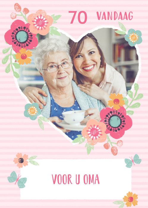 Leuke fotokaart voor een jarige oma met aanpasbare leeftijd.