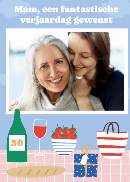 Leuke verjaardagskaart voor een lieve moeder. De fotokaart heeft aanpasbare tekst.