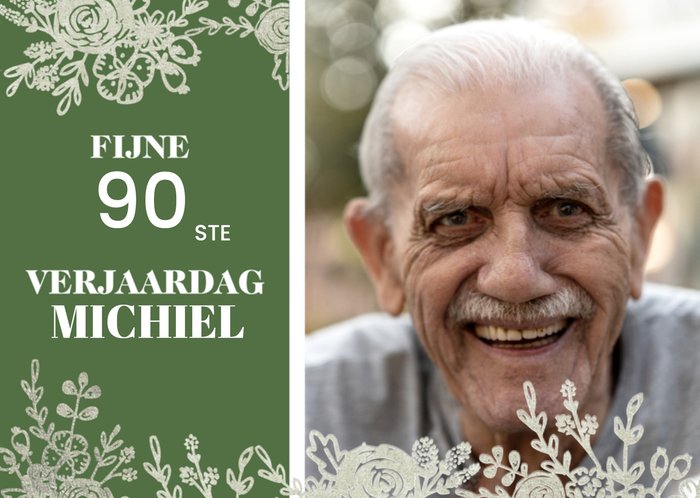 Mooie verjaardagskaart voor een 90-jarige jarige job. De naam op de kaart is aanpasbaar.