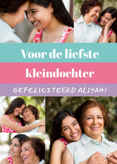 Fotokaart met aanpasbare naam en de tekst: Voor de liefste kleindochter, gefeliciteerd Aliyah!