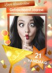 Vrolijke fotokaart met aanpasbare naam en de tekst: Lieve kleindochter gefeliciteerd Joanne 21 vandaag.