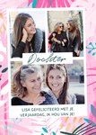 Vrolijke verjaardagskaart met aanpasbare naam en de tekst: Dochter Lisa gefeliciteerd met je verjaardag, ik hou van je!