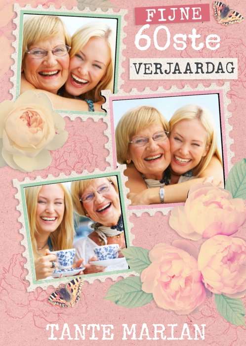 Mooie fotokaart met naam voor een jarige tante. De naam en leeftijd zijn aanpasbaar.