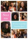 Fotokaart met aanpasbare naam en de tekst: No.1 Zus ik wens je een geweldige verjaardag Gwen!