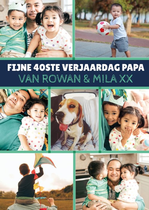 Fotokaart voor een jarige papa met aanpasbare tekst. Er is plek voor meerdere foto's.