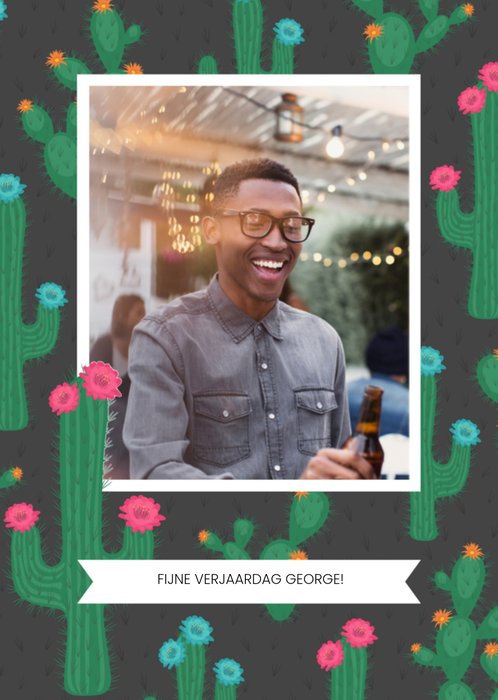 Fotokaart met cactussen en aanpasbare tekst.