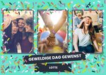 Vrolijke kaart met confetti, foto's en de tekst: Geweldige dag gewenst Lotte. De foto's en naam zijn aanpasbaar.