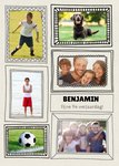 Leuke verjaardagskaart met allemaal fotolijstjes voor persoonlijke foto's en aanpasbare naam.