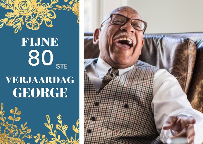 Vrolijke fotokaart met leeftijd en aanpasbare naam.
