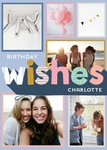 Leuke fotokaart met naam en de tekst: Birthday wishes Charlotte. De naam is aanpasbaar.